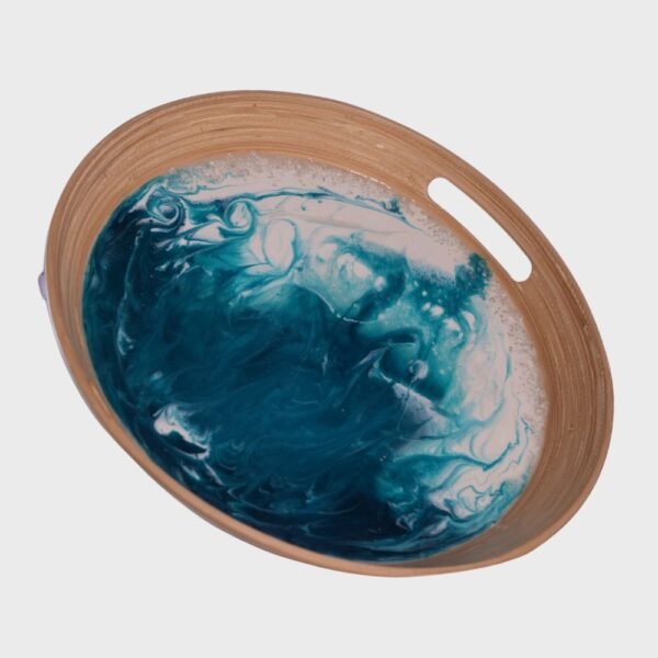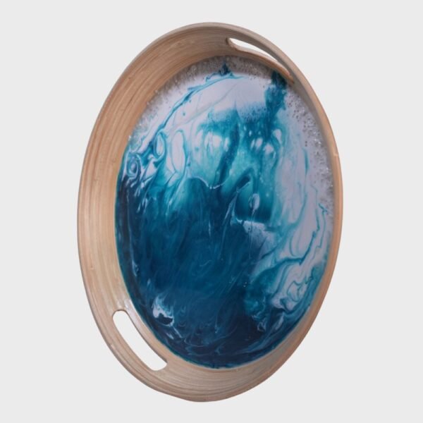 Unique Resin Ocean Art : Every tray is topped with a hand-poured blue resin artwork that mimics the sea. No two trays are alike — the patterns of swirls, foam, and flow are completely unique.