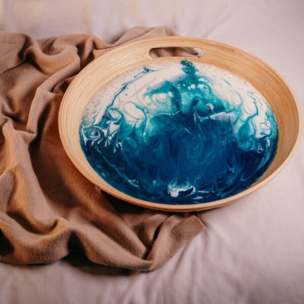 Bring the beauty of the ocean to your table with this handcrafted Ocean Blue Resin Bamboo Tray — a perfect fusion of art and functionality. Whether you’re serving snacks, displaying candles, or upgrading your home decor, this lightweight yet sturdy tray will draw admiration for its swirling blue waves and glossy resin finish.